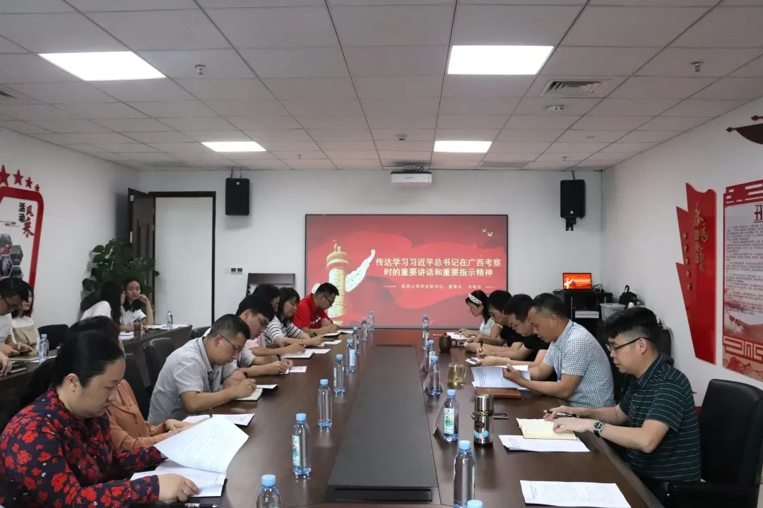 交流研討會分為“精華解讀”和“分享交研”兩大環(huán)節(jié)。在“精華解讀”環(huán)節(jié)中,韋敏忠董事長傳達學習了習近平總書記在廣西考察時的重要講話和重要指示精神,帶領大家集體觀看黨史教育視頻《革命理想高于天》,從習近平總書記的指示精神及黨的百年偉大奮斗歷程中汲取繼續(xù)前進的智慧和力量。