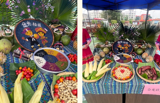 大家用簸箕拼盤將層次分明、色彩斑斕的各項珍饈有規(guī)律的擺放到簸箕中,從五谷雜糧的馥郁到山珍海味的鮮美,再到田園時蔬的清香,這些菜肴不僅口感獨特,而且蘊含著豐富的民族文化內(nèi)涵,體現(xiàn)了人們對美好生活的向往和追求。圖為集團公司職工前往社區(qū)參加活動拍攝的特色美食照片。