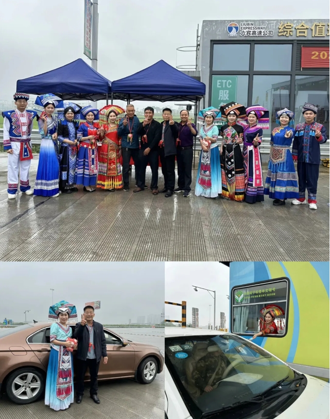 在六賓高速賓陽(yáng)南收費(fèi)站,六賓高速公司的志愿者們身穿民族特色服裝,化身高速公路上的“阿哥”“阿妹”,在提供出行服務(wù)的同時(shí),為過(guò)往司乘人員送上了滿滿的祝福以及具有民族特色的繡球、香囊,形成收費(fèi)站上一道靚麗的風(fēng)景線。