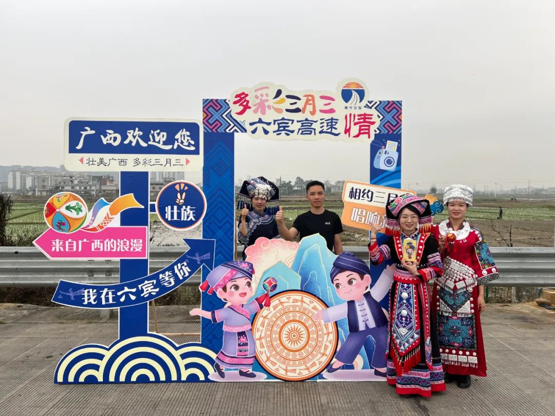 六賓收費總站則通過在賓陽南收費站設(shè)置“三月三”特色打卡點,吸引過往司乘紛紛駐足拍照打卡、發(fā)視頻稱贊,活動現(xiàn)場歡聲笑語不斷。