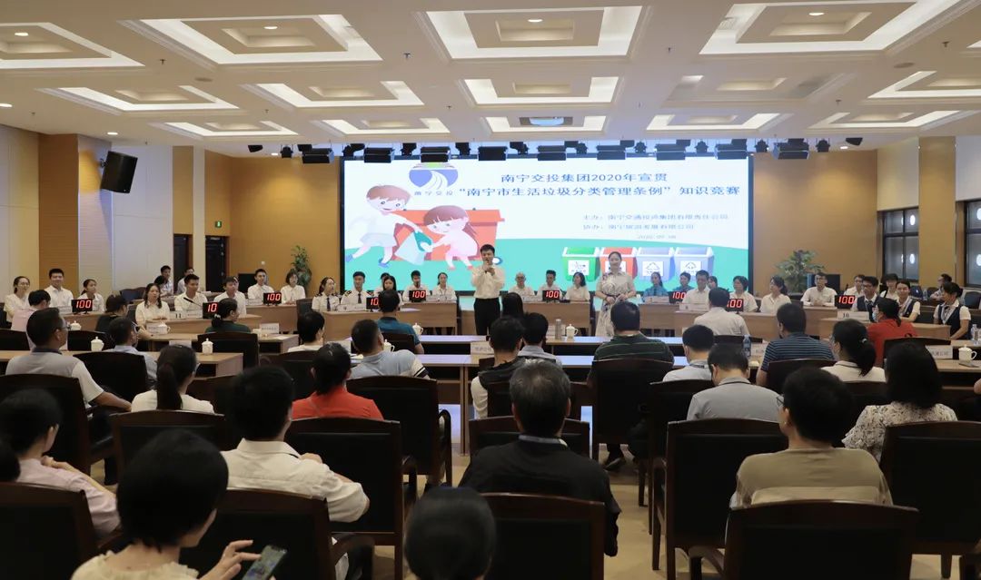 為貫徹落實(shí)習(xí)近平總書記對(duì)垃圾分類工作作出的重要指示精神,倡導(dǎo)廣大干部員工共同參與垃圾分類,樹立綠色的環(huán)保意識(shí),9月8日,集團(tuán)公司在四樓多功能報(bào)告廳舉行“垃圾分類我先行·創(chuàng)建文明齊參與”專題知識(shí)競(jìng)賽。集團(tuán)公司領(lǐng)導(dǎo)農(nóng)明姬、張玉波、黃海燕,南寧市國資委綜合科科長謝雄勝以及市屬八大集團(tuán)相關(guān)人員出席比賽。 本次比賽各子公司共組成11支隊(duì)伍參加,比賽設(shè)置必答題、搶答題、互動(dòng)答題和加賽題四個(gè)環(huán)節(jié),題目涵蓋了《南寧市生...
