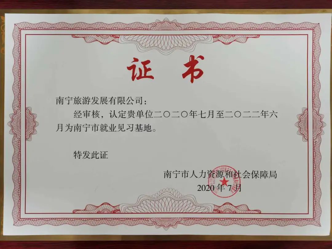 旅發(fā)公司被認定為2020年南寧市就業(yè)見習基地